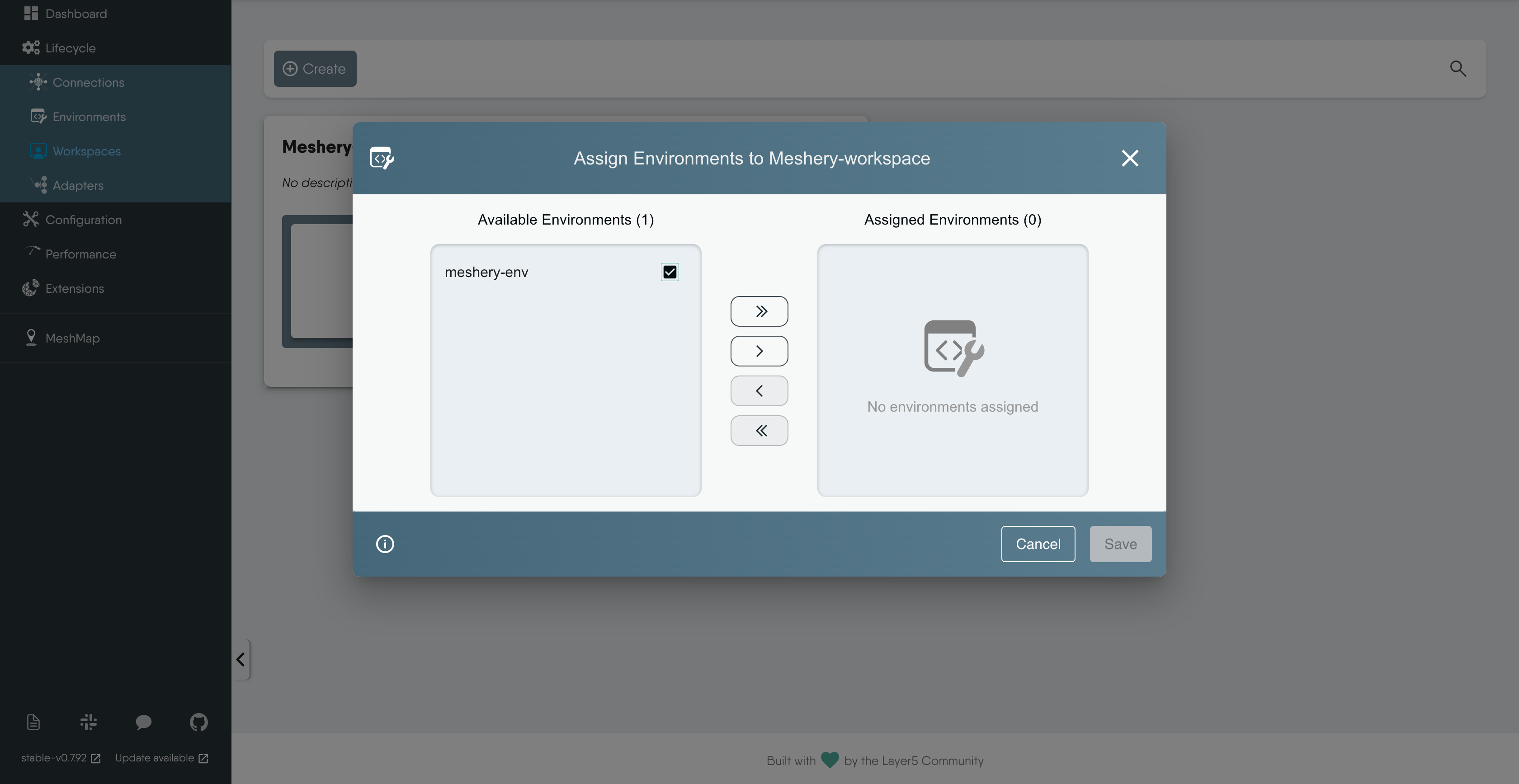 You can assign your created Environments to Workspaces, enabling effective collaboration and resource utilization across your team. This feature allows you to organize your Environments based on specific projects, teams, or use cases, making it easier to manage and share resources within your organization.