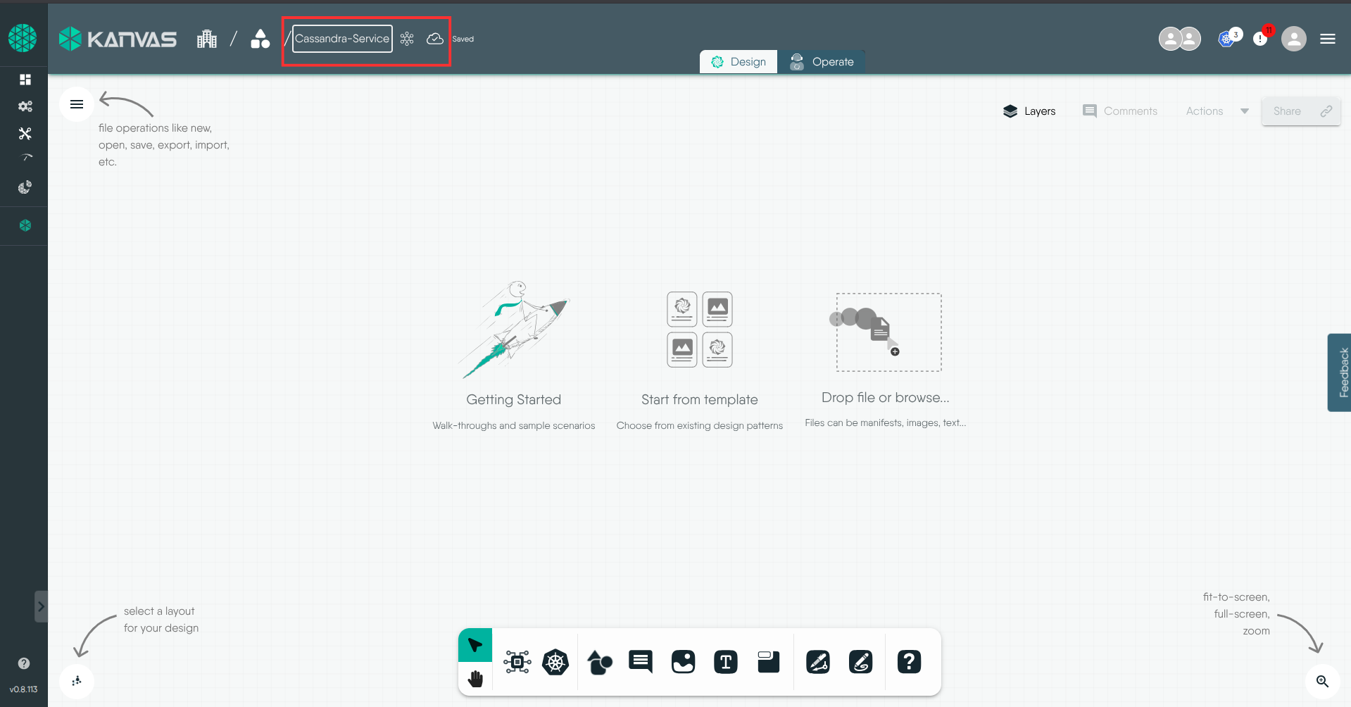 Think of Designer mode as your blueprint studio. Just like architects use specific tools to design buildings, you use Kanvas to design your cloud-native applications.